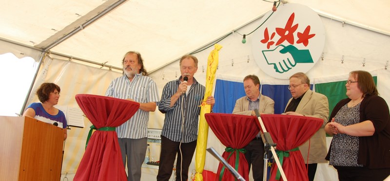 Die Naturfreunde feierten ihren hundertsten Geburtstag mit vielen geladenen Gästen im Beisein von Oberbürgermeisterin Cornelia Petzold-Schick bei strahlendem Sonnenschein mit jeder Menge Musik und der abwechslungsreichen Gesprächsrunde „Talk im Zelt“, die Rainer Kaufmann moderierte. Hierbei erklärte u. a. Karl Mangei, SPD-Gemeinderat und aktives Mitglied der Naturfreunde, den Hintergrund des Naturfreundelogos und den Naturfreundegruß „Berg frei“, mit dem sich die Naturfreunde zur öffentlichen Zugänglichkeit der Natur durch alle Menschen bekennen.