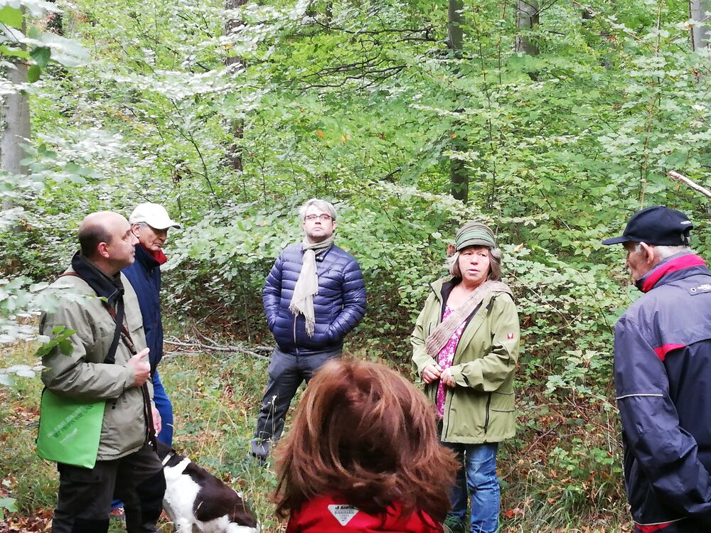 Zur angesagten naturkundlichen Wanderung traf sich eine größere Gruppe von Mitgliedern und interessierten Bürger/innen. Zur Teilnehmerschar gehörte auch der SPD Landtagskandidat für unseren Wahlkreis, Stephan Walter, den die2. Vorsitzende des OV, Gemeinderätin Monika Schwaiger, besonders willkommen hieß.Gut gegen das herbstlich, windige Wetter gerüstet, konnte die Gruppe unter der fachkundigen Führung von Gemeinderat Christian Feldmann mehrere kommunalpolitisch relevante Themen vor Ort in Augenschein nehmen und diese mit den anwesenden Gemeinderätinnen und Gemeinderäten diskutieren.Die Wanderung führte in den Gemeindewald in der Nähe des Grillplatzes. Thema war zunächst die Ausweisung eines Waldrefugiums als Bestandteil des Alt- und Totholzkonzeptes Baden-Württemberg. Dort wird eine Waldfläche von gut einem Hektar aus der forstlichen Nutzung genommen, um Lebensräume füralt- und totholzbewohnende Tierarten, insbesondere seltene Käfer, Fledermäuse und Vögel, zu bekommen und langfristig zu erhalten. Für diese naturschutzfachliche Aufwertung des Waldes erhält die Gemeinde Ökopunkte, die teilweise für den naturschutzrechtlichen Ausgleich für den Bebauungsplan Erdbeerhof gegen Entgelt herangezogen werden können. Im weiteren Verlauf der Wanderung wurde das seltene Exemplar eines Speierlings vorgestellt. Dieser heimische Baum genießt nicht nur aufgrund seiner Seltenheit Beachtung, sondern findet zunehmend Bedeutung für den Waldumbau infolge des Klimawandels. Weitere Themen waren die aktuellen Trockenschäden im Wald, insbesondere bei der Buche, das angedachte Baumschutzkonzept zur Erhaltung älterer landschaftsprägender Bäume in der Feldflur sowie das Konzept zur Begründung eines klimastabilen Bürger/innen-Waldes („4.000 Bäume für 4.000 Bürgerinnen und Bürger“).