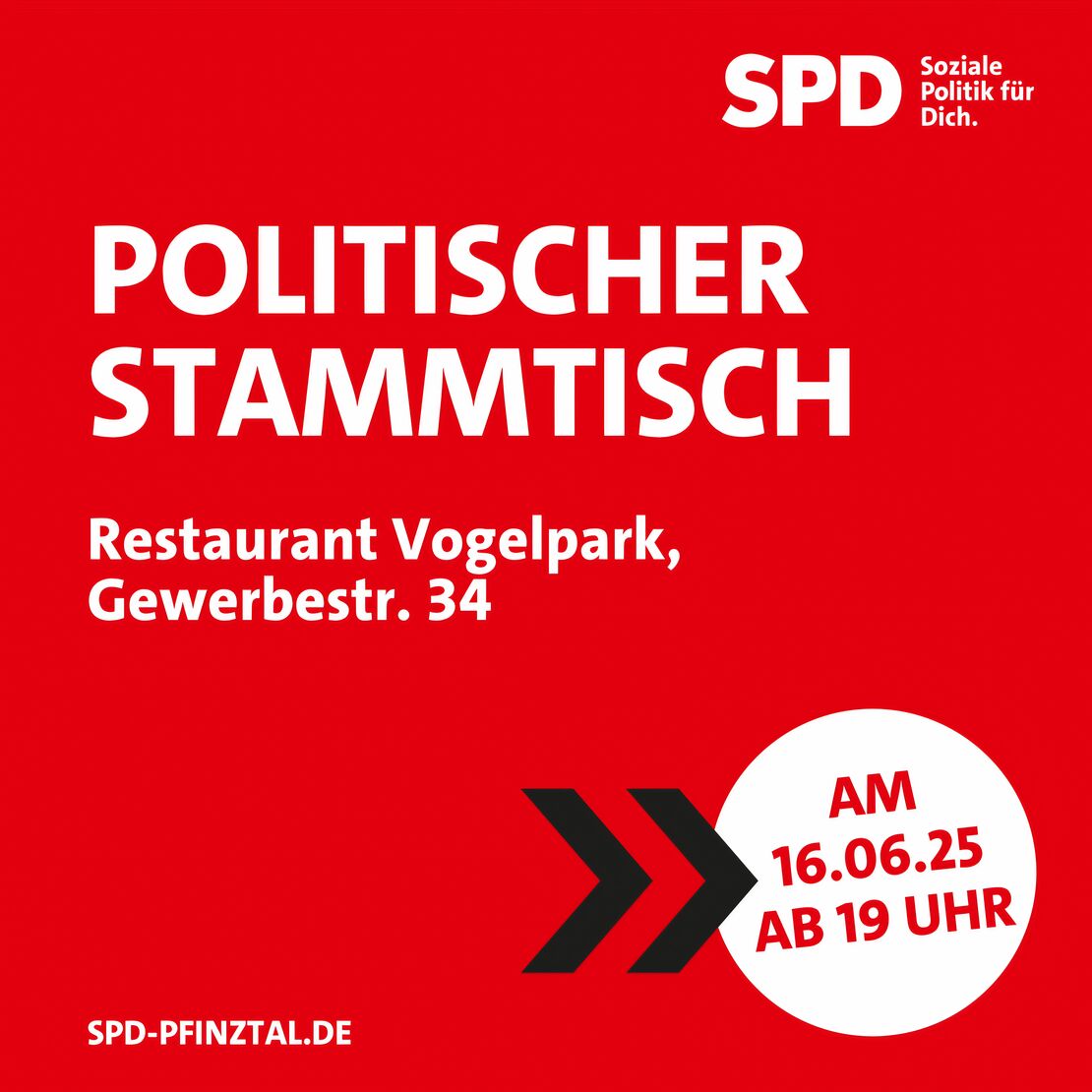 Wir laden alle interessierten Bürgerinnen und Bürger herzlich ein zu unserem nächsten Stammtisch Politik am Montag, 16. Juni 2025, 19.00 Uhr, in der Gaststätte Vogelpark in Berghausen.