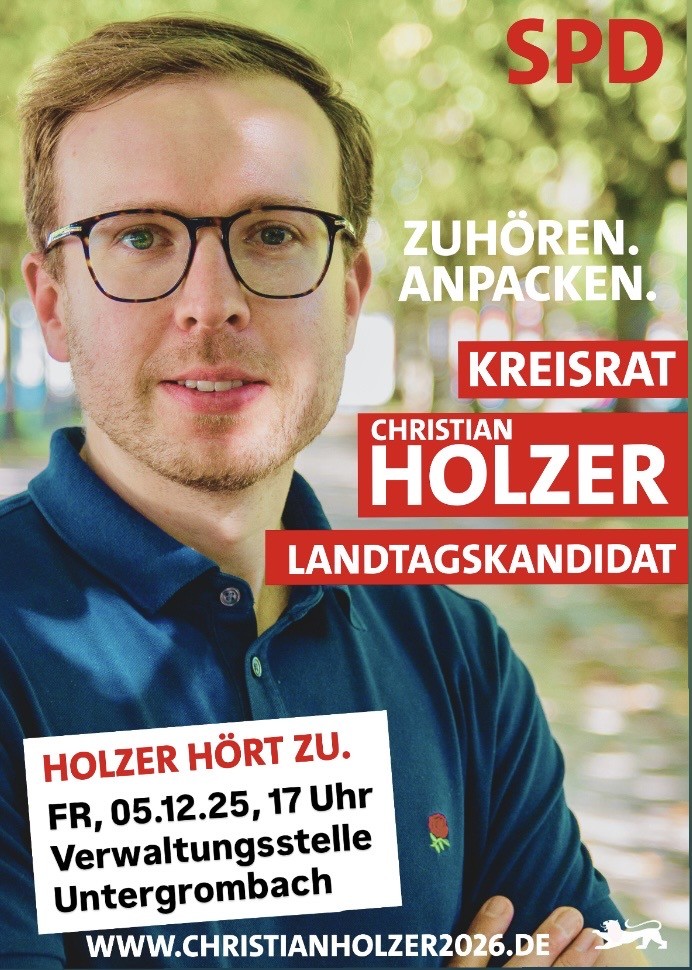 Der SPD-Kreisrat Christian Holzer lädt am Freitag, 5. Dezember 2025 zu einer öffentlichen Veranstaltung ein, um mit Bürgerinnen und Bürgern ins Gespräch zu kommen.