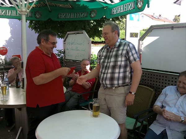 Im festlichen Rahmen hat der SPD-OV Vorsitzende das Parteibuch des neuen Partei-Mitgliedes Claus Retzbach überreicht.