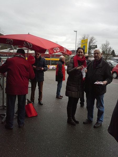 Bei ihrem letzten Infostand in Berghausen haben die Mitglieder der SPD Pfinztal zusammen mit der Landtagsabgeordneten und Kandidatin Anneke Graner um Stimmen für die SPD bei der Landtagswahl am kommenden Sonntag, 13. März 2016 geworben. Denn eines ist klar, waren sich die Genossinnen und Genossen einig: " "Am 13. März geht es darum, dass Baden-Württemberg weiterhin ein starkes und soziales Land bleibt. Das gibt es nur mit einer starken SPD. Es geht darum, die erfolgreiche Regierung von Grün-Rot für dieses Land fortzusetzen. Und es geht darum, dass Rassisten in unserem Land nicht das Sagen bekommen. Spätestens jetzt muss jeder wissen, dass die Stunde geschlagen hat. Nur wer zur Wahl geht, bestimmt mit, wer das Land Baden-Württemberg in den nächsten fünf Jahren repräsentiert und regiert. Deshalb am Sonntag WÄHLEN GEHEN!!!"