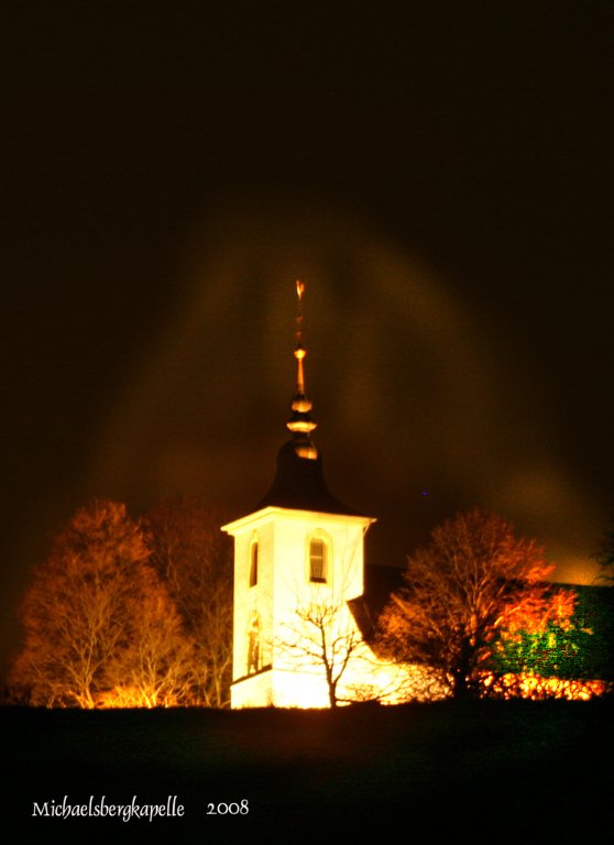 Michaelsberg und Michaelskapelle sind ein weithin sichtbares Merkmal in unserer Region. Im Frühjahr 2012 enstand ein Schaden in der Elektroversorgung der Scheinwerfer. Seitdem ist es dort oben nachts dunkel, manchmal rabenschwarze Nacht. Das Signal der Michaelskapelle kann nicht mehr wahrgenommen werden.