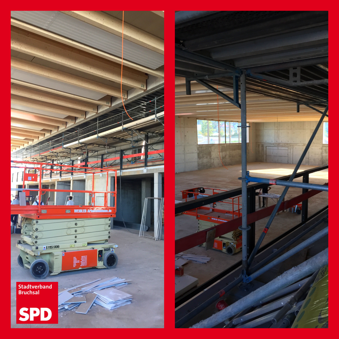 Der Bruchsaler Gemeinderat und dessen SPD-Fraktionsmitglieder konnten sich bei einem Vororttermin vom Baufortschritt an der neuen Sporthalle überzeugen.
