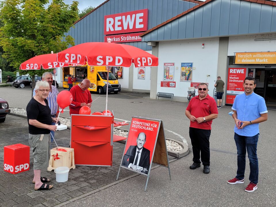 Die SPD Sulzfeld-Zaisenhausen konnte bei ihrem Wahlkampfstand vor dem örtlichen Rewe-Markt auch den Bundestagskandidaten im Wahlkreis Karlsruhe-Land, Patrick Diebold, begrüßen. Er nahm sich Zeit für die Begegnungen und führte viele anregende Gespräche. Zufrieden konnte er am Ende feststellen: „So macht Wahlkampf Spaß!“