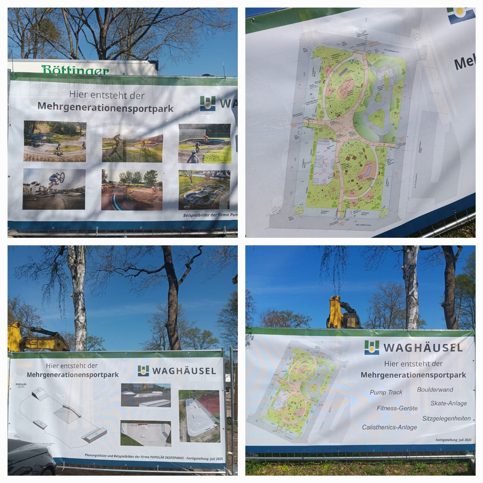 In der Zwischenzeit haben wir nicht locker gelassen. Jetzt wird sichtbar: Die Mühe hat sich gelohnt. An der Wagbachhalle Wiesental wird derzeit der Mehrgenerationenpark gebaut – entstehen werden eine Boulderwand und Skate-Anlage, Fitness-Geräte, eine Calisthenics-Anlage sowie ein Pump-Track für Radfahrer.