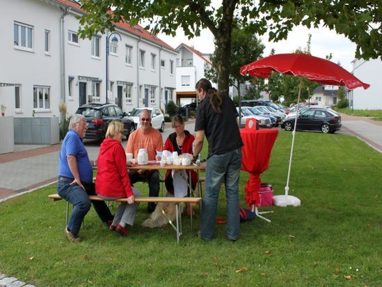 Nachdem sich diese Bürgerrunde zunächst an der alten Mühle in Langenbrücken und am Marktplatz in Mingolsheim ausprobiert hatte , stieß der „ROTE TISCH“ im Neubaugebiet Südlicher Mozartweg Mitte September auf eine erfreuliche Resonanz bei den Anwohnern.