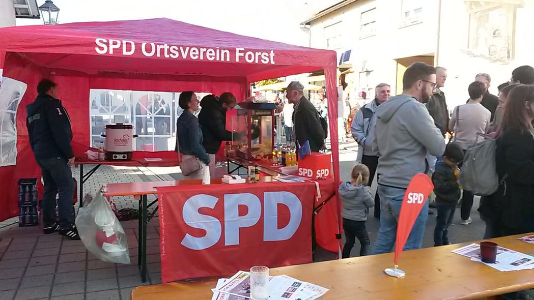 Der SPD-Ortsverein bot auch in diesem Jahr hausgemachten Maultaschen, süßes Popcorn und verschiedenen Soft-Drinks an. Die Bürgerinnen und Bürger konnten auf einem Plakat "Ihre Ideen für Forst" niederschrieben. Zahlreiche Anregungen wurden notiert u.a. bezahlbares Wohnen, einen aktiven Lärmschutz, Ausbau der Radwege, Senkung der KiTa-Beiträge, ein neues Konzept für den Heidesee uvm.