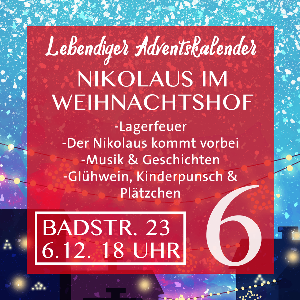 Die Jusos und der SPD Ortsverein sind beim ersten "Lebendigen Adventskalender" mit dem Weihnachtshof in der Badstraße 23 dabei. Wir freuen uns auf Lageferuergeschichten, Musik, Glüchwein, Kinderpunsch und Plätzchen. Der Nikolaus kommt natürlich auch.