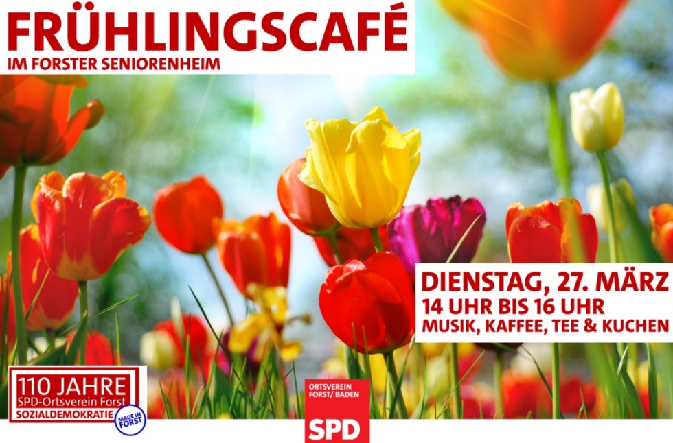 Die Forster Sozialdemokraten laden am Dienstag, den 27. März, von 14-16 Uhr wieder alle Seniorinnen und Senioren zum Frühlingscafé ins Seniorenheim ein. Neben Kaffee, Tee und leckeren Kuchen wird es wieder ein musikalisches Rahmenprogramm geben.