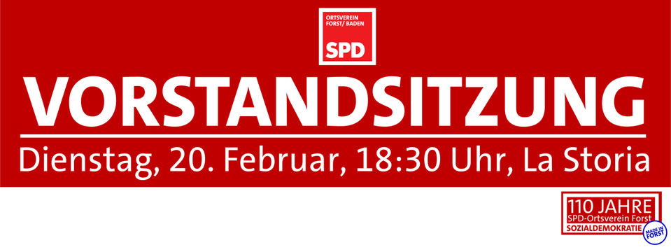 Am Dienstag, den 20. Februar beginnt bereits um 18:30 Uhr im La Storia die Vorstandssitzung 1/18. Hierzu sind alle Mitglieder und Freunde herzlich eingeladen.