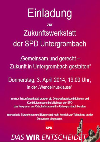 Einladung zur Zukunftswerkstatt der SPD Untergrombach