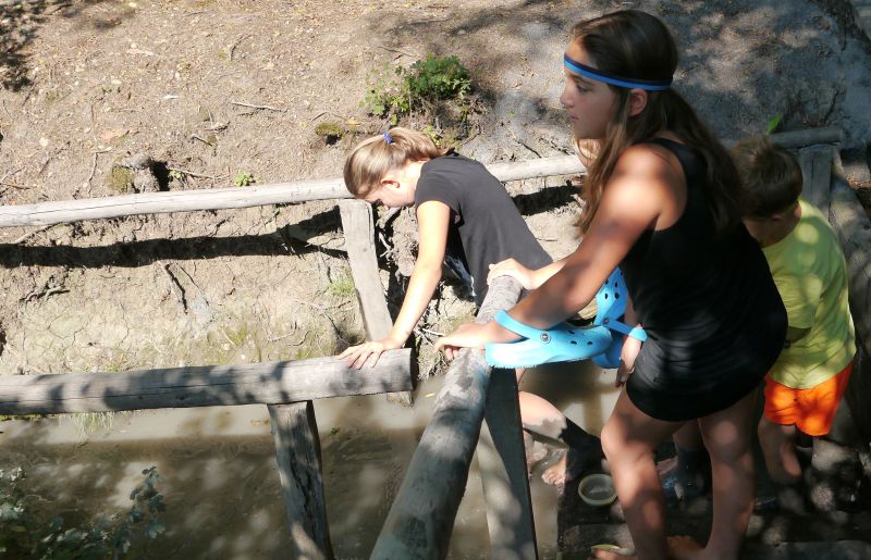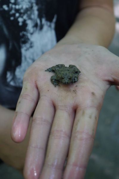 Als ein weiterer Höhepunkt stellte sich in diesem Jahr das Thema "Froschumsiedelung" dar. Vom Schlammbad wurden die eingefangenen Frösche -transportiert in Tupperschachteln, in denen zuvor das Vesper gewesen war oder in Plastiktüten mit Wasser- vom Schlammbad in den nahegelegenen