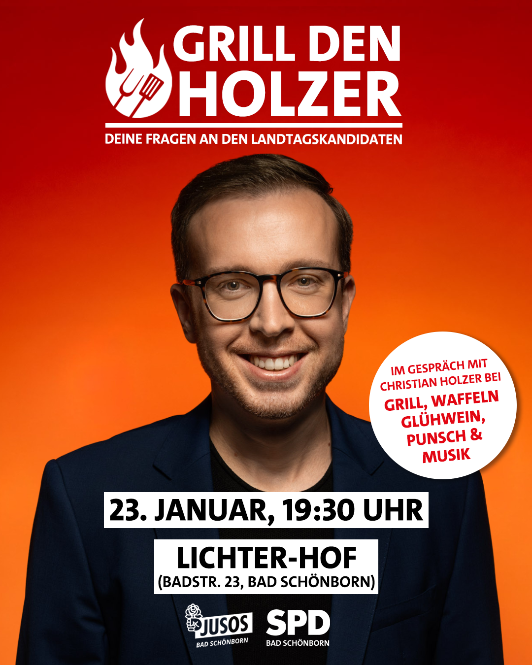 „Wir probieren immer wieder neue Formate aus“, sagt Dennis Eidner, Vorsitzender des SPD-Ortsvereins Bad Schönborn. „‘Grill den Holzer‘ ist kurzweilig und humorvoll, lässt aber trotzdem Raum für offene Gespräche. Der Tausend-Lichter-Hof eignet sich dafür besonders gut – hier entstehen immer wieder spannende Diskussionen in entspannter Atmosphäre.“ Der Lichterhof wird damit erneut zu einem Ort, an dem verschiedene Menschen zusammenkommen, unterschiedliche Perspektiven aufeinandertreffen und neue Ideen entstehen.