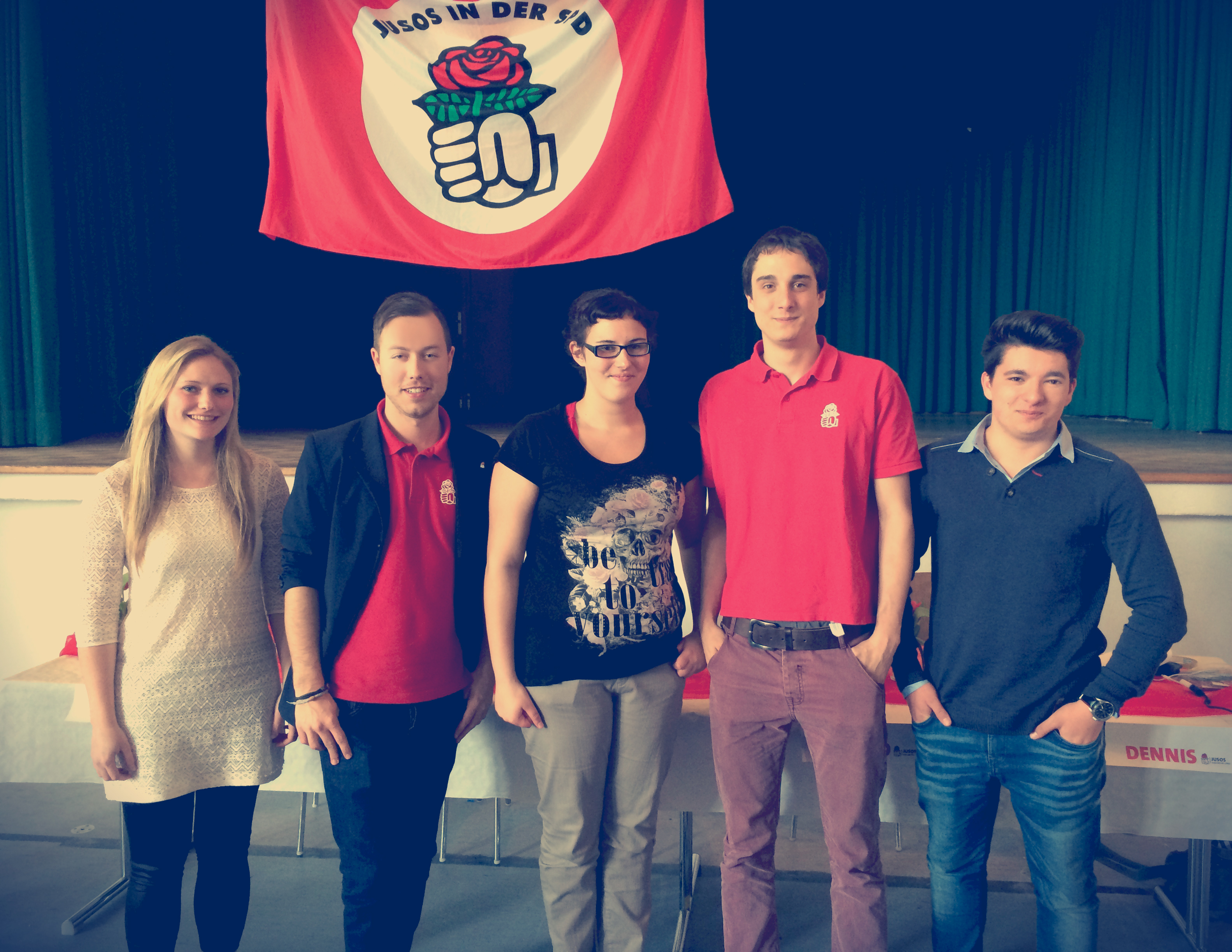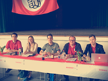 Die Große Koalition wird weiterhin kritisch betrachtet. “Wir können nicht akzeptieren, dass die Schwächsten unserer Gesellschaft keinen Mindestlohn erhalten. Auch Langzeitsarbeitslose haben es verdient, mindestens 8,50€ pro Stunde, für ihre Arbeit zu bekommen”, so der bisherige Sprecher Marko Vidakovic in seiner Abschiedsrede. Der 26-Jährige Psychologe aus Bruchsal trat aus beruflichen Gründen nicht mehr zur Neuwahl für den Kreisvorstand an. Bei den Vorstandswahlen wurden Simon Hilner (Kassier, 22, Student aus Ettlingen), Dennis Eidner (Schriftführer 23, Student aus Bad Schönborn) und Tamina Hommer (Beisitzerin, 21, Studentin aus Oberderdingen) in ihren Ämtern mit großer Mehrheit bestätigt. Neu in den Kreisvorstand wurden Gabor Pöstenyi (Pressesprecher, 18, Schüler aus Pfintztal) und Semira Fetjah (Beisitzerin, 21, Studentin aus Bruchsal) gewählt.