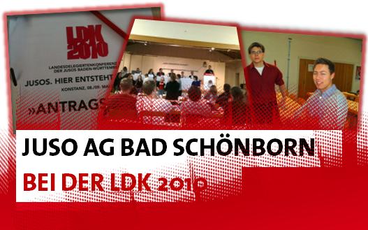 Dennis Eidner (Vorsitzender AG Bad Schönborn, Jusos Karlsruhe-Land Vorstand) und Christoph Becker (2.Stellvtr. Vorsitzender AG Bad Schönborn) nahmen vom 08.-09.Mai an der LDK 2010 in Konstanz als Delegierte aus Karlsruhe-Land teil.