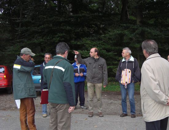 Vor dem RundgangAm 18. September 2008 hatte der SPD-Ortsverein interessierte Bürgerinnen und Bürger zu einer Begehung in den Kammerforst geladen. Geführt vom Leiter des Forstamtes, Hrn. Dr. Eichkorn und dem zuständigen Revierförster, Hrn. Fuchs, begaben wir uns auf einen Rundgang beim Waldsportplatz. Hr. Dr. Eichkorn stellte die beiden zugewanderten Pflanzenarten vor, welche die stärkste Bedrohung für die derzeitige Flora darstellen. Eine Patentlösung für dieses Problems gibt es noch nicht, da die Bekämpfung einen hohem Personaleinsatz erfordern würde, hierfür aber die Ressourcen fehlen.