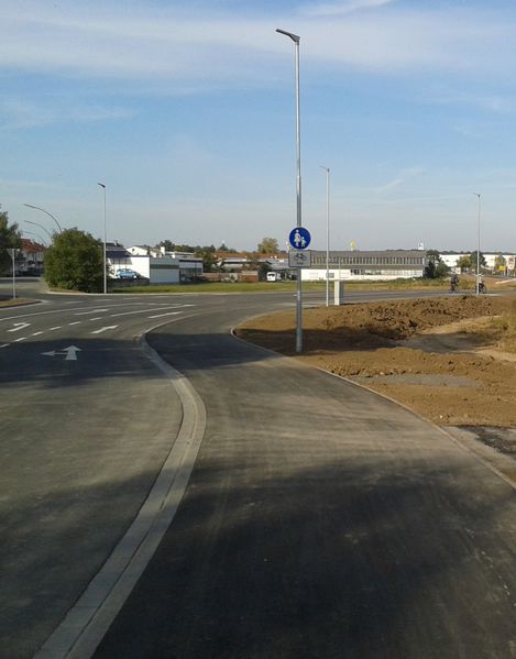 Damit alle sicher ankommenDie Erich-Keßler-Straße gestaltet die Straßenführung im Karlsdorfer Osten neu und erschließt ein kleines Gewerbegebiet optimal. Die beiden ersten Neuansiedlungen, ALDI und dm, verbessern bereits jetzt die Nahversorgung in unserer Gemeinde und es ist absehbar, dass weitere Ansiedlungen folgen. Aber nicht nur mit dem Auto kann man diese Firmen gut erreichen. Ein kombinierter Geh- und Radweg entlang der neuen Straße ermöglicht es auch den schwächeren Verkehrsteilnehmern aus der Ortsmitte heraus sicher die neuen Geschäfte zu erreichen.