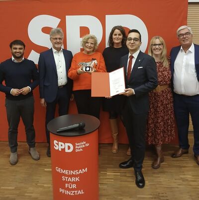 Unter diesem Leitgedanken feierte die SPD Pfinztal am 30. Oktober im Selmnitzsaal ihre Ehrungsveranstaltung – ein Abend voller Dankbarkeit, Gemeinschaft und Anerkennung. Im festlichen Rahmen wurden langjährige Mitglieder und ehrenamtlich Engagierte geehrt, die mit ihrem Einsatz über viele Jahre hinweg dazu beigetragen haben, Politik vor Ort lebendig zu gestalten und unsere Gesellschaft zusammenzuhalten. Ein besonderer Höhepunkt war die Verleihung der Willy-Brandt-Medaille an Dagmar Elsenbusch Costerousse. Mit der höchsten Auszeichnung der SPD wurde ihr herausragendes Engagement für soziale Gerechtigkeit, Solidarität und die Werte der Sozialdemokratie gewürdigt. Zu den Gästen des Abends zählten unter anderem: Nicola Bodner (Bürgermeisterin der Gemeinde Pfinztal), Markus Rupp (Bürgermeister von Gondelsheim und Vorsitzender der SPD Kreistagsfraktion), Dr. Frank Mentrup (Oberbürgermeister der Stadt Karlsruhe und Präsident des Städtetags von Baden-Württemberg), Anneke Graner (Regierungsdirektorin und Landtagskandidatin) sowie Assad Hussain (Kreisvorsitzender der SPD Karlsruhe-Land). Auch mehrere langjährige Mitglieder wurden für ihre Treue und ihr Wirken in der Partei geehrt: Bürgermeister a. D. Heinz E. Roser wurde für 40 Jahre Treue zur Sozialdemokratie ausgezeichnet; Gerda Gfrörer, Marianne Cimmino und Dr. Norbert Foitzik wurden für 25 Jahre Mitgliedschaft geehrt. In angenehmer Atmosphäre, begleitet von vielen persönlichen Gesprächen und Erinnerungen, klang der Abend aus – ein Abend, der zeigte, dass die Zukunft dort entsteht, wo Menschen sich mit Herz und Überzeugung einbringen. Die SPD Pfinztal dankt allen Mitwirkenden und Gästen der Ehrungsveranstaltung und ist stolz auf das Engagement ihrer Mitglieder.