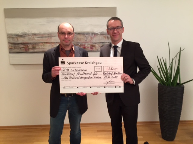 Der SPD-Ortsverein beteiligte sich mit seinem Kinderflohmarkt am Festival der guten Taten. Es war eine gelungene Veranstaltung: Es waren alle verfügbaren Tische vergeben und wir konnten unser Angebot um einen Waffelstand erweitern. Zudem fanden zahlreiche Besucher den Weg in die Altenbürghalle und so wir erzielten auch aus finanzieller Sicht ein gutes Ergebnis. Aus dem Erlös konnten wir Hrn. Bürgermeister Weigt für das Festival der guten Taten nun einen Betrag von 250 € übergeben. Wir danken allen recht herzlich, die sich an diesem Erfolg beteiligt haben; sei es aktiv mit einem Verkaufsstand, dem Besuch der Veranstaltung oder einer direkten Vor-Ort-Spende für das Festival.