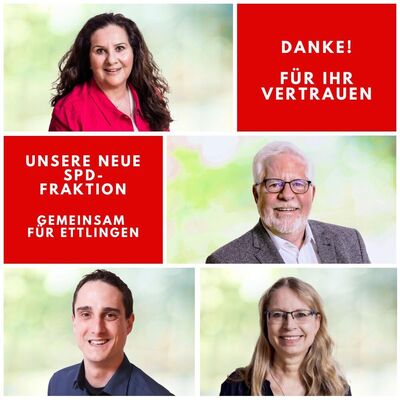 Ihre SPD Pfinztal und ihre gewählten Vertreter im Gemeinderat: Dagmar Elsenbusch, Tilo Reeb, Volker Vortisch und Angelika Konstandin
