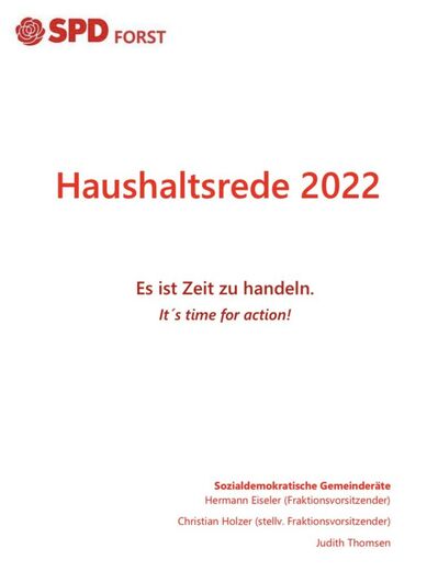 bereits ähnliche Ausführungen waren in unseren vorherigen Haushaltsreden zu lesen. Wir sind entschlossen und haben eine klare Vorstellung von unserer Gemeinde Forst im Jahr 2035. Dies sollten unsere vergangenen Haushaltsreden deutlich gemacht haben.