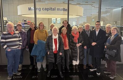 Der erste Programmpunkt führte die Gruppe in das Geldmuseum der Deutschen Bundesbank. Dort erhielten die Teilnehmerinnen und Teilnehmer im Rahmen eines Fachvortrags zu Geld & Gold einen vertieften Einblick in die Entwicklung von Währungssystemen, den Wert von Edelmetallen und die geldpolitischen Aufgaben der Bundesbank. Gerade die Verbindung von historischen Exponaten und modernen Fragestellungen machte diesen Einstieg besonders eindrucksvoll.