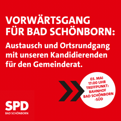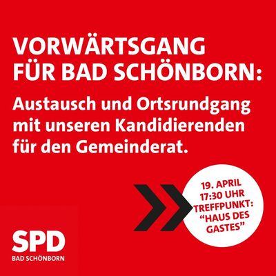 Wir freuen uns darauf, Sie kennenzulernen und gemeinsam mit Ihnen in den Austausch für Bad Schönborn zu gehen. Während des Orts-Rundgangs (c.a. eine Stunde) können zudem Ideen direkt vor Ort für unser Bad Schönborn gesammelt werden.