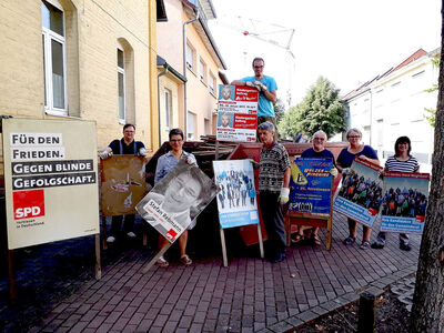 Keine Wahl ohne Plakate – das gilt allen technischen Veränderungen zum Trotz heute noch genauso wie vor 150 Jahren, als sich mit der „Sozialdemokratischen Arbeiterpartei“ die unmittelbare Vorläuferpartei der SPD gründete. Ganz so weit reichen die Plakatbestände des Ortsvereins Waghäusel zum Glück nicht zurück. Dennoch hat sich mit der Zeit in unserem Keller Einiges angesammelt – am Wochenende war es höchste Zeit zum Ausräumen.