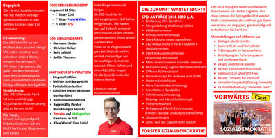 In den vergangenen fünf Jahren haben unsere SPD-Gemeinderäte nicht nur schöne Reden geschwungen, sondern auch was geschafft. Als kleinste Fraktion im Gemeinderat haben die Sozialdemokraten die meisten Anträge eingereicht und stetig über die politische Arbeit berichtet. Wir sind nicht nur wie die meisten politischen Akteuere vor den Wahlen aktiv, sondern jede Woche - für Sie und für Forst!