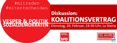 Innerparteiliche Demokratie: Die Mitglieder der SPD dürfen vom 20. Februar bis 1. März über eine erneute Koalition mit der Union abstimmen. Das Ergebnis des Mitgliedervotums wird bereits am 4. März in Berlin verkündet. Den Koalitionsvertrag haben die drei Parteien innerhalb einer Woche erarbeitet und Anfang vergangener Woche vorgelegt. Nun geht es darum sich mit den Inhalten des Koalitionsvertrags (177 Seiten) intensiv zu befassen. Im Anschluss an die Vorstandssitzung findet deshalb am Dienstag, den 20. Februar ab 19:30 Uhr eine Diskussionsveranstaltung über den Koalitionsvertrag statt. Alle Mitglieder und Freunde sind herzlich willkommen sich an der Diskussion zu beteiligen. Bereits am Samstag, den 17. Februar veranstaltet der SPD-Kreisverband ab 17 Uhr eine Diskussionsveranstaltung im Alten Rathaus in Bretten mit Katja Mast, stellv. Fraktionsvorsitzende der SPD im Bundestag.
