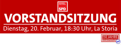 Am Freitag, den 9. März findet um 19 Uhr im Nebenzimmer des Restaurant La Storia die Mitgliederversammlung des SPD-Ortsvereins statt. Alle Mitglieder und Freunde sind hierzu herzlich eingeladen.