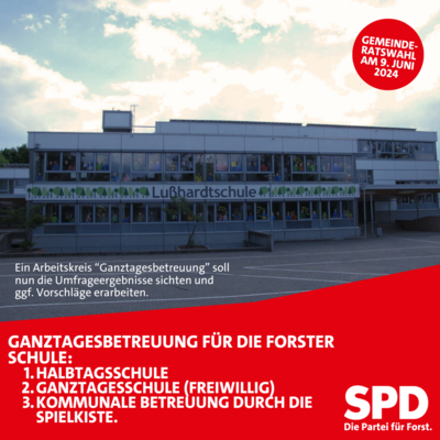 Für unsere Fraktion ist dieses Thema von besonderer Bedeutung: Es geht um die Forster Kinder, die viel Lebenszeit in der Schule verbringen und darum, dass genau diese Zeit gut gestaltet ist. Es geht um die Eltern und Familien, die für ihre familiären und berufliche Situation eine passende, verlässliche und gute Betreuung für ihre Kinder benötigen. Und es geht um alle an der Schule und Betreuung Beteiligten (Schulleitung, Lehrer, Betreuer in der Spielkiste), die wesentlich dazu beitragen, dass dies ein guter Ort für die Kinder ist. (und die dies mit den zur Verfügung stehenden Ressourcen ermöglichen müssen).