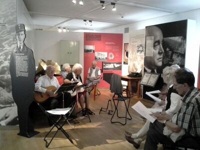 so lautete der Titel des zweiten Teils der vom Pfinztaler SPD-Mitglied Siegfried Fischer initiierten Sonderführung durch die Geschichte Badens im Badischen Landesmuseum im Karlsruhe. In gewohnt lebendiger aber auch nachdenklicher Art führte die ehemalige Regierungspräsidentin Gerlinde Hämmerle durch eine Zeit mit Höhen und Tiefen. Beginnend mit der für das besiegte Frankreich demütigenden Reichsgründung 1870/71 im Schloss zu Versailles über die Urkastastrophe des 1. Weltkriegs, die Verfolgung politisch und ethnischer Gegner im Dritten Reich bis hin zu den Trümmern nach Ende des 2. Weltkriegs zeigte Gerlinde Hämmerle anschaulich auf, wohin Großmannssucht, Nationalismus und verfehlte Politik führen. Die badische Komponente dieser Zeit bilden unter anderem die Geschichte der preußischen Soldaten, die vor ihrem Einsatz in den deutschen Kolonien zur Gewöhnung an das tropische Klima in Karlsruhe stationiert wurden und die Bauhausarchitektur in der Karlsruher Dammerstocksiedlung. Urlaubsreisen, Alltagskitsch und die Musik der 50er Jahre prägten die Nachkriegszeit. Auch der Schwarzwald darf in dieser Ausstellung nicht fehlen. Vom „Schwarzwaldmädel“ über die „Schwarzwaldklinik“ bis hin zur Schwarzwaldfamilie „Die Fallers“ sind Exponate zu sehen. Abgerundet wurde die Führung wie selbstverständlich mit dem gemeinsam gesungenen "Badnerlied".
