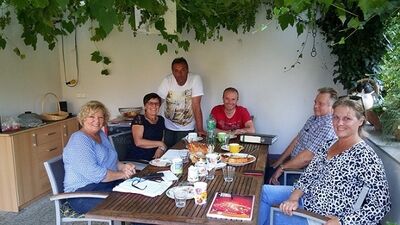 Zur Vorbereitung des 2. Halbjahrs trafen sich die SPD-Gemeinderäte im Garten der Fraktionsvorsitzenden Dagmar Elsenbusch zum Ideen- und Nachrichtenaustausch. Viele Themen wurden besprochen, wie z.B. das anstehende Bürgerbegehren, fehlende Sozialwohnungen und Kindergartenplätze, die Salzwiesen-Problematik, das geforderte Gewerbegebiet Bühl. Auffallend war, wie lange diese Punkte schon in der Pipeline liegen und nichts geschieht, obwohl die SPD-Gemeinderäte immer wieder nachgebohrt haben. In Pfinztal herrscht Stillstand, so die allgemeine Meinung. Anträge der Fraktionen müssen schneller behandelt und abgearbeitet werden. Gemeinderatsbeschlüsse müssen schneller herbeigeführt und umgesetzt werden. Trotz dieses unbefriedigenden Fazits ließen sich die SPD-Gemeinderäte die Laune nicht verderben. Das herrliche Wetter, Kaffee und Kuchen taten das Ihre, so dass die Mandatsträger mit frischem Schwung und hochmotiviert in die neue Sitzungssaison starten können. Von li.n.re.: Dagmar Elsenbusch, Angelika Konstandin, Thomas Vogt, Tilo Reeb, Reiner Kunzmann, Birgit Schneider.