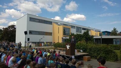 Um 11 Uhr konnte der Rektor der Sebastianschule, Herr Auchter, viele Gäste zur Einweihung des Gebäudes begrüßen. Unter den Gästen waren neben Herrn Bürgermeister Weigt, einigen Gemeinderäten und einem Vertreter des Ingenieurbüros auch Frau Rektorin Freimuth von der Schönbornschule Karlsdorf-Neuthard, sowie die leitende Schulamtsdirektorin Frau Groß und der Schulamtsdirektor Herr Philipp. Die Schülerinnen und Schüler haben auf der Bühne tolle Auftritte hingelegt.