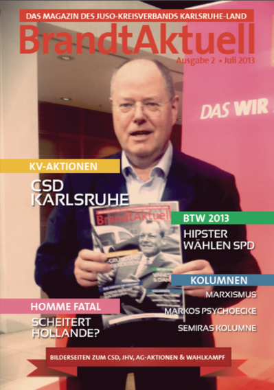 Es ist in aller Munde. Andere Kresiverbände haben uns mehrfach darauf angesprochen. Die Downloadzahlen liegen bis heute bei über 1000. Facebook ist voller Lob. Die Release Party war ein tolles Event. - Dies sind die Früchte unserer ersten Ausgabe von BrandtAktuell. Hoch ist dementsprechend die Messlatte für die weiteren Magazine. Die Redaktion hat sich als Ziel gesetzt, weiterhin so bunt zu bleiben, wie es unser Kreisverband ist - und entstanden ist dieses zweite Magazin, das wir euch voller Freude vorstellen.