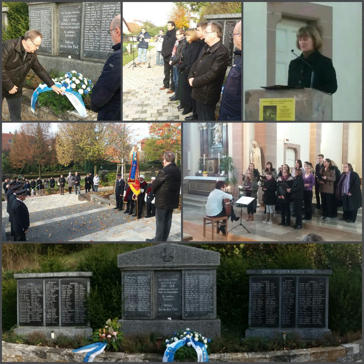 -Der gute Kamerad- erklang, gespielt von zwei Musikern des Musikverein Untergrombach, über den alten Friedhof in Untergrombach. Zum Gedenken der Gefallenen und Vermissten Untergrombachern legten der Ortschaftsrat und die Fahnenabordnung der Freiwilligen Feuerwehr vor den Gedenksteinen einen Kranz nieder. Bei der Gedenkfeier in der katholischen Kirche, gedachten zuvor Ortsvorsteher Karl Mangei und seine Vertreterin Barbara Lauber den Millionen Opfern der beiden Weltkriege, den Opfern der Gewaltherrschaft und des Terrors. Karl Mangei hob die Bedeutung des Volkstrauertages, gerade in der heutigen Zeit hervor. Der Volkstrauertag sei ein Stück unverzichtbarer Erinnerungsarbeit gegen das Vergessen. Er erinnerte an die große Verantwortung, die Europa und ganz besonders Deutschland für den Erhalt des Friedens hätten. Diese Verantwortung gilt auch für die vielen Menschen, die aus ihrer Heimat fliehen, um Leib und Leben zu retten. Musikalisch begleiteten die Sänger von Ton-Art die Gedenkfeier.