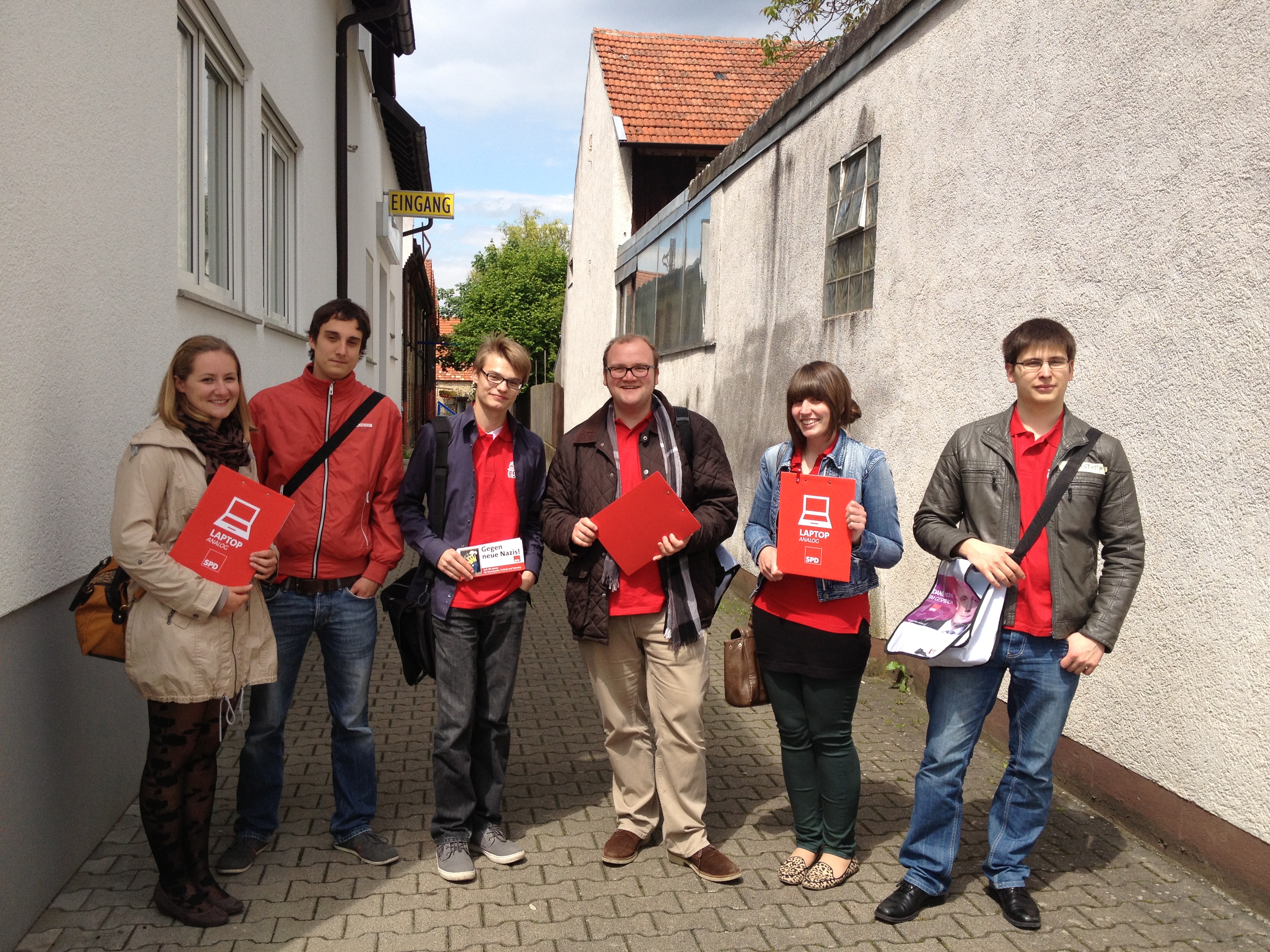 Ingesamt war der Workshop für uns alle sehr erfolgreich und wir gehen mit weiteren positiven Gefühlen in den Wahlkampf. In der Erprobungsphase, in der wir durch Bad Schönborn schlenderten und erste Haushalte besuchten, konnten wir feststellen, dass es manchmal deprimierend, aber häufig auch toll sein kann, wenn man mit den Menschen direkt in Kontakt kommt; und wir haben ja gute Gründe, mit den Menschen in Kontakt kommen zu wollen: unser Regierungsprogramm ist klasse, unser Kanzlerkandidat Peer Steinbrück und die beiden Kandidierenden aus unseren Wahlkreisen Vanessa Rieß und Daniel Born sowieso. In diesem Sinne: Infostandest du noch oder klingelst du schon?